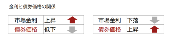 債券を理解する上で特に重要なのが、金利が上がると債券価格は下がる 金利が下がると債券価格は上がるという性質です。