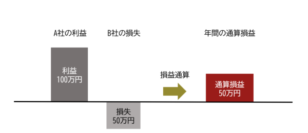損益通算とは、所得税を計算する際、ある所得で生じた損失(赤字)を、他の所得で生じた利益(黒字)から差し引いて相殺することです。例えば証券投資でも、売却利益が出ると約20.315%の税金が引かれます。100万円の利益だとおよそ20万円もの税金が引かれてしまうのです。ただ、その他に損失のものを合わせて売却することで税金が戻ってくることがあります。同一証券会社内で損益通算をすることもできますし、複数社間(A社・B社)でも損益通算は可能です。ただし、その場合は確定申告が必要です。